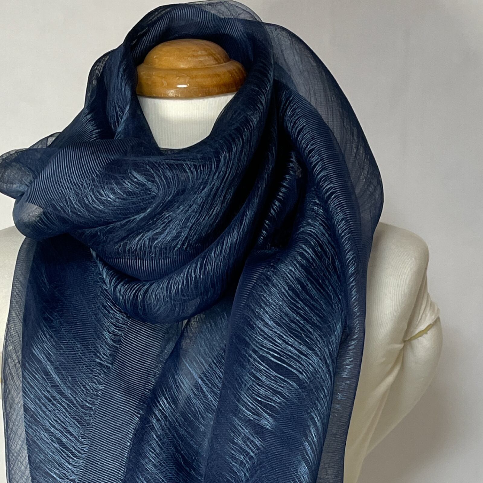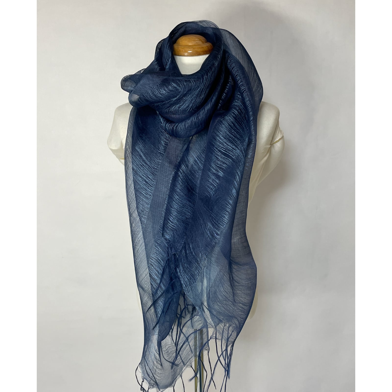 藍染シルクオーガンジーストール はごろも三重織/濃藍
